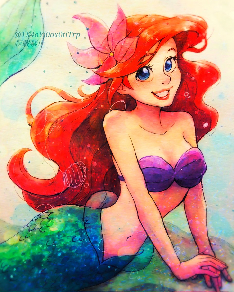 #ディズニーファンアート #アリエル #透明水彩色鉛筆 海底の世界のプリンセス🧜♀️