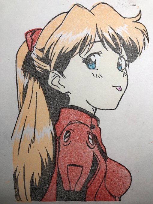 #今月描いた絵を晒そう 今月はアスカとシンジでLASでした。しかも色がついてます。 #惣流・アスカ・ラングレー #碇シンジ #ゴム版 twitter.com/1_1_9ra_risepr…