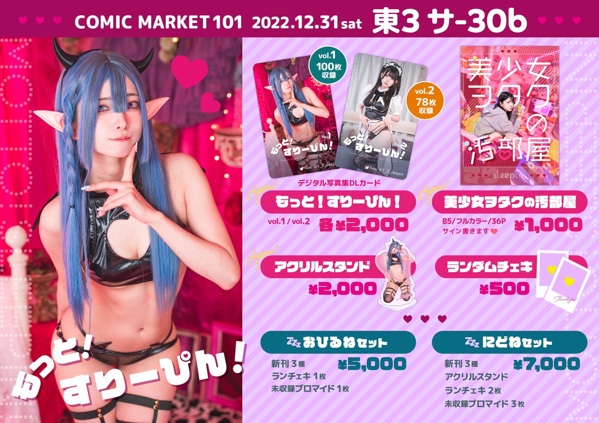 15 61 #C101お品書き #C101新刊 人生初即売会イベントです💓 そして初グッズ達…🎀 DLカード2枚に私のガチリアル汚部屋(おへや♡)の写真集です⋆⸜ 🏠 ⸝⋆ お得な「おひるねセット」と「にどねセット」もあるのでぜひゲットしてください❣️ DLカードの写真は普段は見られない 妖艶?なぴんダゾー!!! 22/12/27 19:58