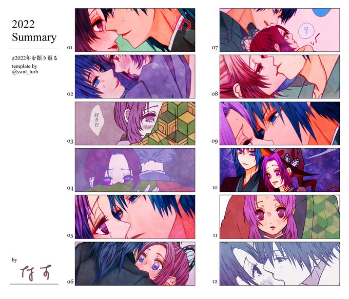 #2022年の絵を振り返る ぎゆしの🌊🦋で振り返ってみた~キスばかり描いてるとフォロワーさんに思われてそうなので以外をなるべく選んだけどそれでもキスしてる絵があるね(笑) 今年もTLを失礼いたしました!イチャイチャ大好き! テンプレありがとうございます✨