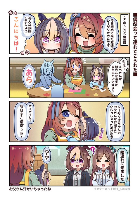 シンボリ家のみんなに秘密の昔話… (テイオーちゃん寝る前にジュースはやめようね☺️) #ウマ娘 #トウカイテイオー