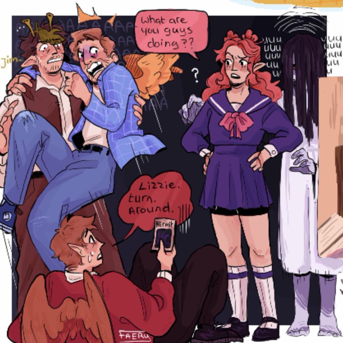 Drew the gamer squad in this weeks aggie cause i miss them </3 ive been rewatching all the vods and phasmaphobia stays funny (also the flatworld one) [ #grianfanart #smallishbeansfanart #solidaritygamingfanart #ldshadowladyfanart ]