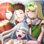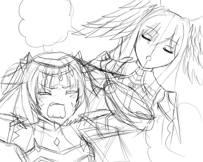 #今月描いた絵を晒そう やはりこちらでしょうね。(ほぼこれしかない) レックスファミリーの休息。二枚目の左上にいるのはノア。ヒカリのイーラ沈没の悪夢にうなされる生活は改善され、ニアの寝相とヨダレは悪化している…