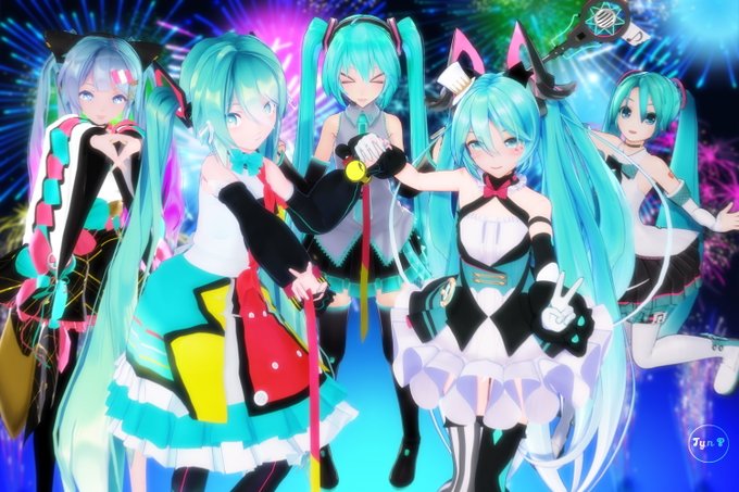 #今年も残りわずかなので今年一番伸びた絵を貼る見た絵描きさんも強制でやる 丁度マジカルミライ明けだったのも有って大きく伸びた一枚。 #MMD #サーカスちゃん #マジカルミライ #初音ミク