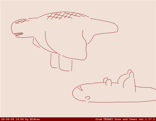 自らの死を悟ったフルフルの横で暑さに負けてひっくり返ったもちもちとかげ #tegaki_dt