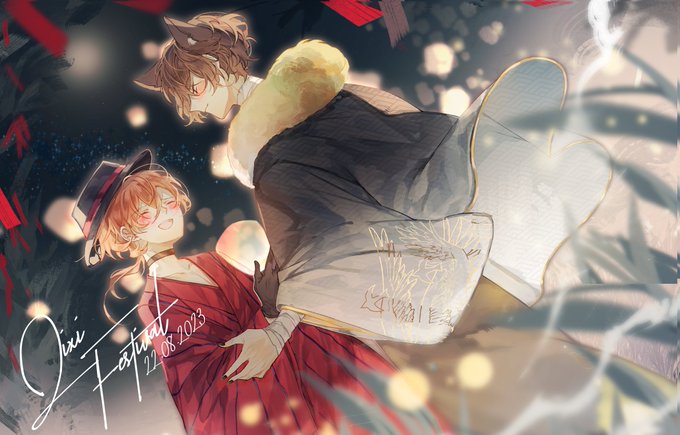 There's a legend behind QiXi festival but the short gist of it is a love story between a human & celestial being, and they are only allowed to meet once a year. So I drew skk in the image of that this year. And since they only meet 1 time I think Dazai will make good use of it twitter.com/1hys12/status/…