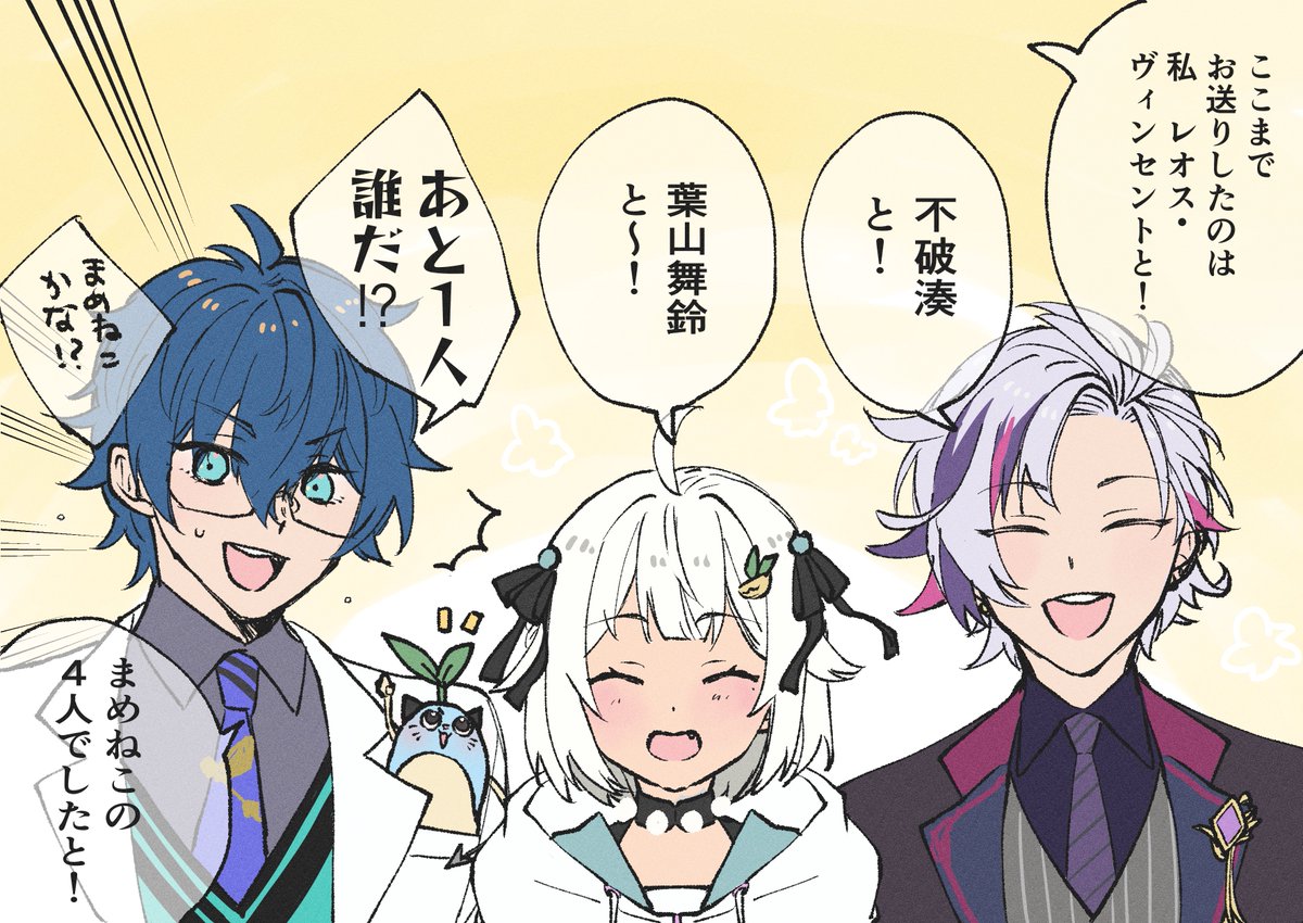 良いチームすぎて健康になりました #Nari_Art #さ絵ぐさ #まめねことレオス #推す画ール #魔王と三従者WIN