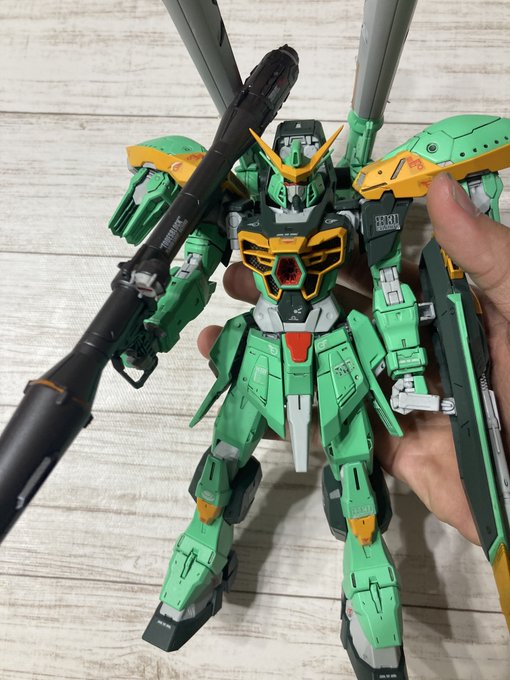 フルアーマーガンダム完成しましたー約1ヶ月かかったけどいい感じの緑にすることができたと思う次は何にするか未定 #ガンプラ好きと繋がりたい #ガンプラの画像を貼るとRTされると聞いて #ガンプラ