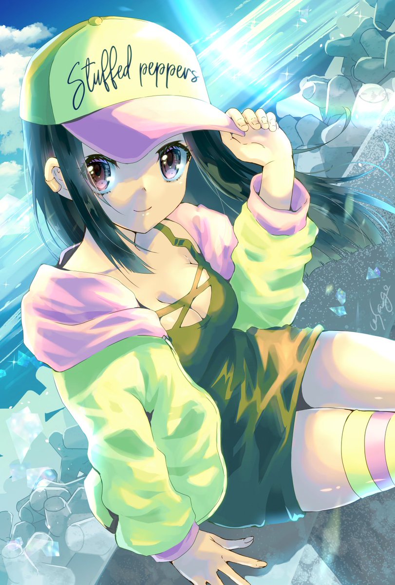 線画の調整しつつ、蛍光色の絵にチャレンジしたかった絵。 夜中描いてたラフを勢いで完成させました。 帽子には「ピーマンの肉詰め」って書いてある(੭˙▽˙)੭ #オリジナル #創作 #イラスト #夏の創作クラスタフォロー祭り #絵描きさんと繋がたい #イラスト好きな人と繋がりたい twitter.com/asago0135/st…