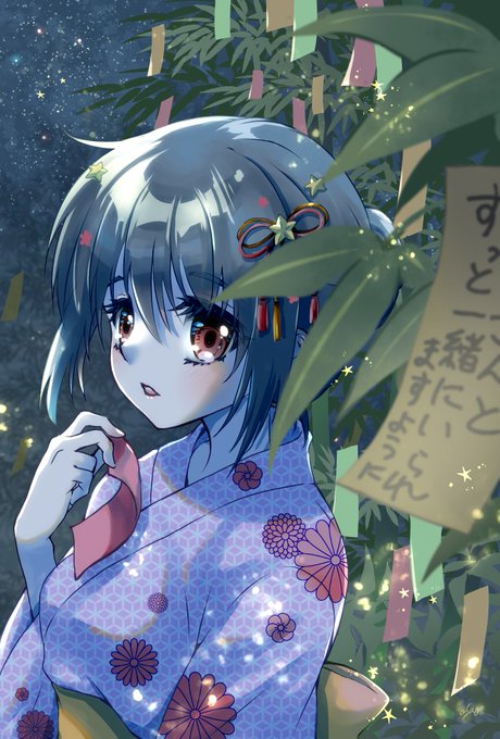 今日 #七夕 だっていうのを思い出していそいそ描いた(*´꒳`) #オリジナルキャラクター #創作 #イラスト #夏の創作クラスタフォロー祭り #絵描きさんと繋がたい #イラスト好きな人と繋がりたい