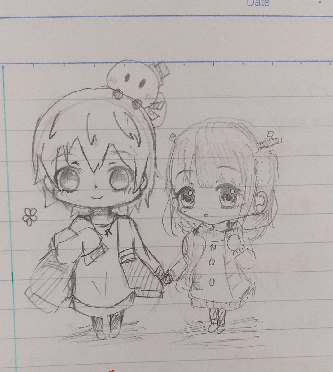 1 7 第4.5回科学ノートお絵描き🎨 前回のおらふくんにおらこちゃんを付けました🎵 うろ覚え過ぎて少し心配💦 #見るかもわからん 21/11/10 20:25