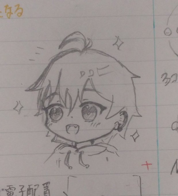 第4.5回科学ノートお絵描き🎨 前回のおらふくんにおらこちゃんを付けました🎵 うろ覚え過ぎて少し心配💦 #見るかもわからん