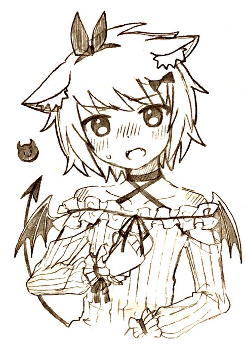 と言う訳でしょー君が描いた戌宮のハロウィンイラストだよっ 何でも描いていいとは言ったけど…これは…??? 小悪魔…らしいけど…頭のこれとか…ねぇ…??? #戌宮あーと #ハロウィンイラスト #Vtuber