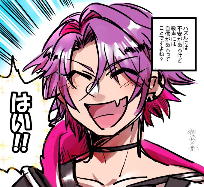 ゲームる。めちゃくちゃ好きポイント。 「歌得意」って自信をもって「はい!!!!」って答えてたところ。好き。自分の特技にしっかりと自信を持っている推し。好き。 #わたらいらすと