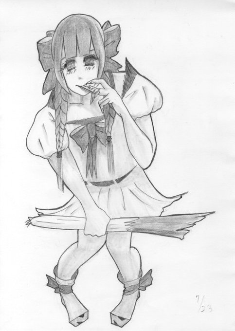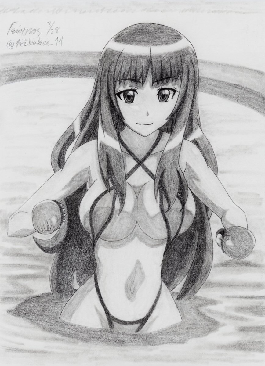 アニメの「ベン・トー」から、元絵から「茶髪」を描いてみました😌。水着をセクシーにしてみました😅。狼の命「拳」を保護するためと、半額弁当が取れるように「パウンドグローブ」を着けてみました😅。 #絵師さんと繋がりたい #イラスト好きな人と繋がりたい #ベン・トー #模写 #アレンジ #鉛筆画