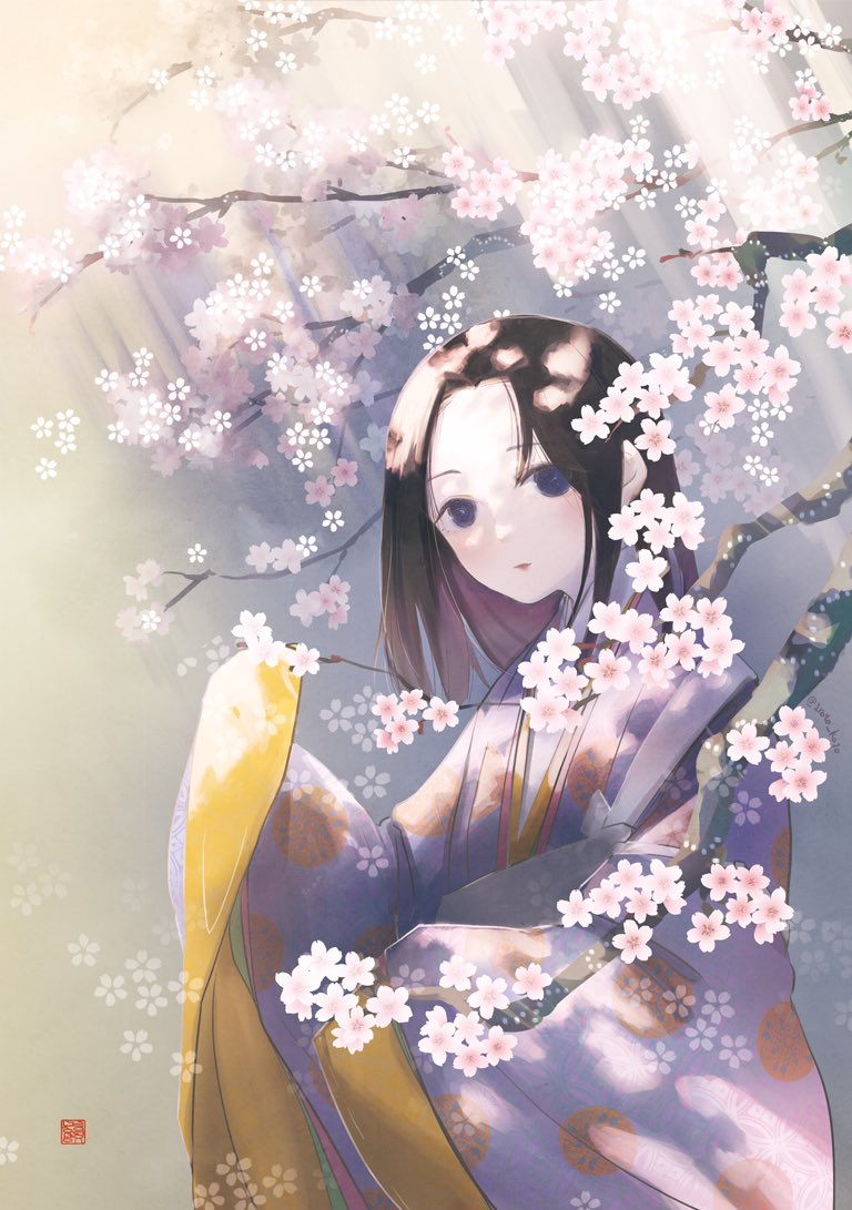18 94 桜とメジロ #イラスト #illustration #美人画 23/03/30 18:32