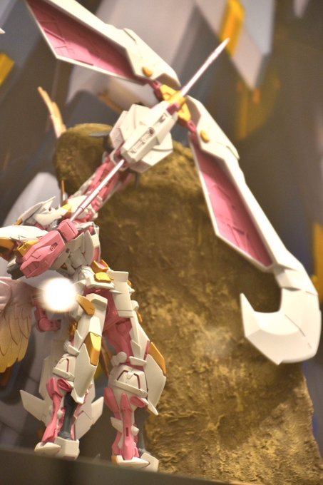 #ガンダムベース東京 に大河さん作のガンプラ見に行って来ましたー♫ 閉店間近でわたわたしたし、ショウケース越しだったから難しかったけど撮影頑張ってみた! 羽のグラデとか弓のフォルムのカッコよさとかグッときて、もうめっちゃカッコ可愛かったです🌸🌸 #ガンプラ #ガル天 @genki_okawa