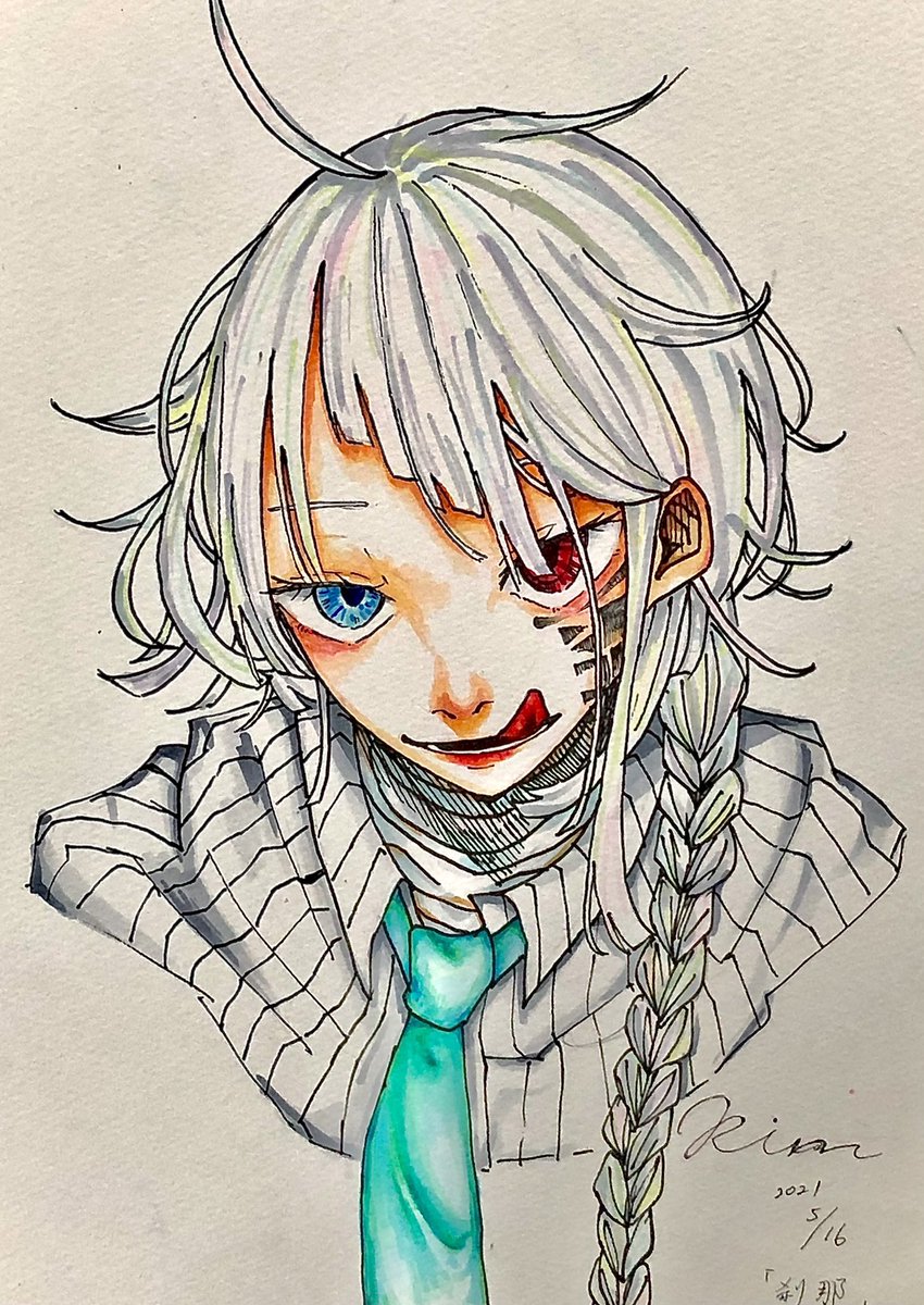 昨日の塗っただけ いい顔してる✧︎ サインをミスるっていう俺氏 考査期間中で何やってんだ…? #絵描きさんと繋がりたい #コピック #アナログ