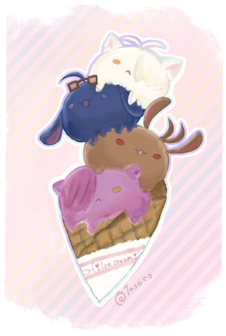 らくがき⚠ブンゴー動物化 ねこうさかわうそあいすくりーーむ🍨