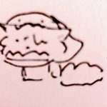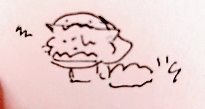 しごおわ今日のらくがきー! わにの被り物(不満そう)