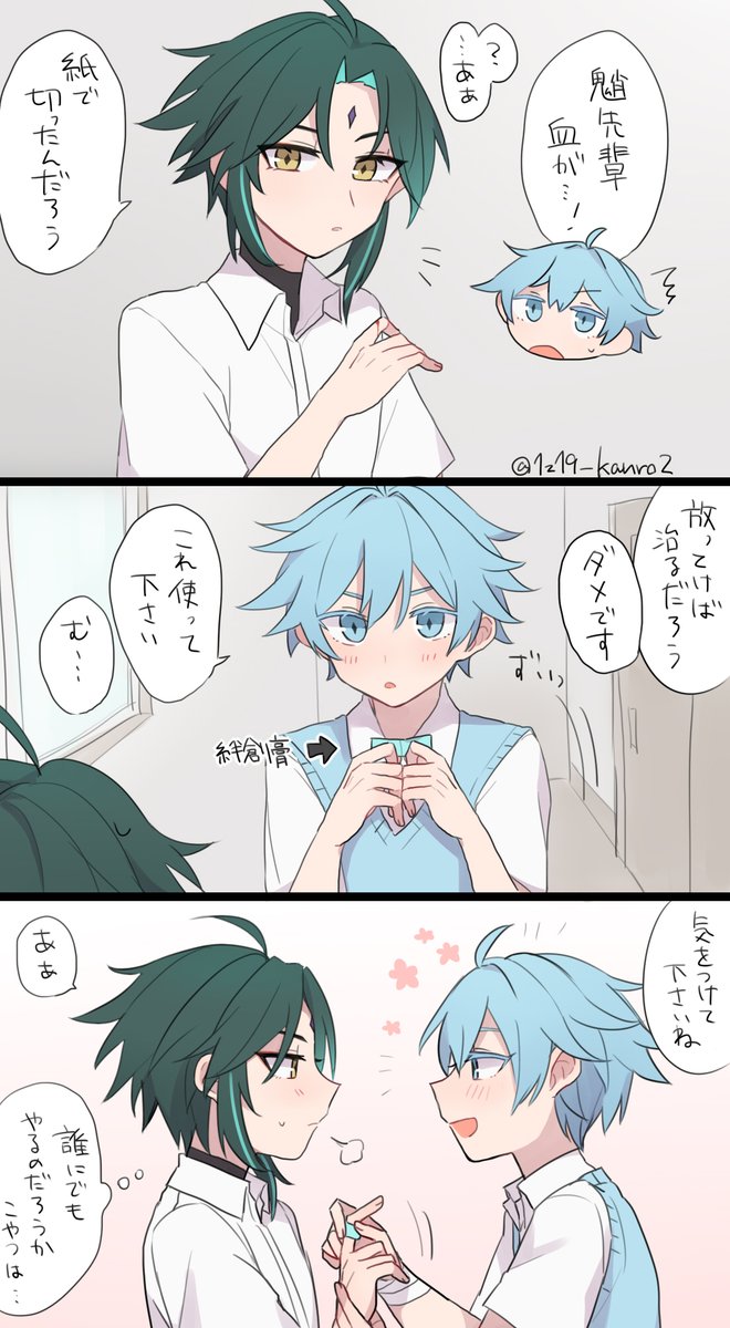 1 3 暖のとり方/魈重♀ 季節は冬で描かせていただきました ⚠学パロ、重雲が女体化してますご注意ください #ふたりで過ごす季節企画 22/11/30 21:04