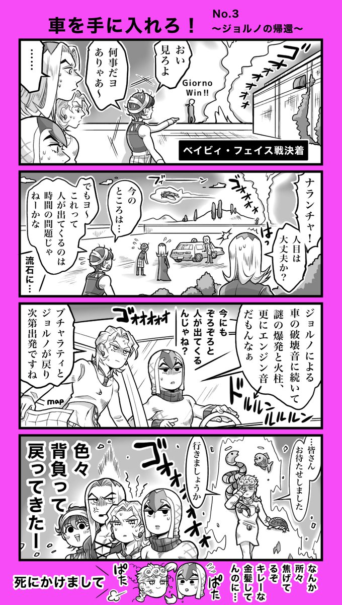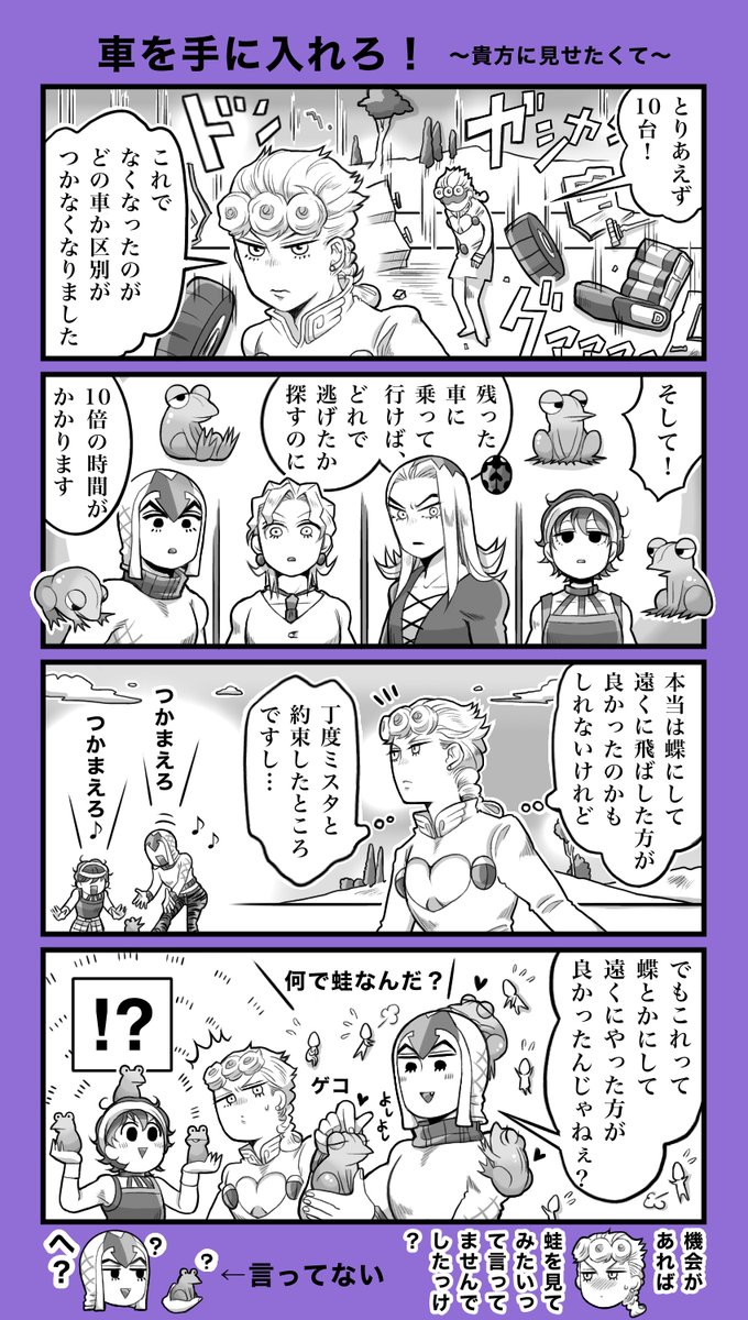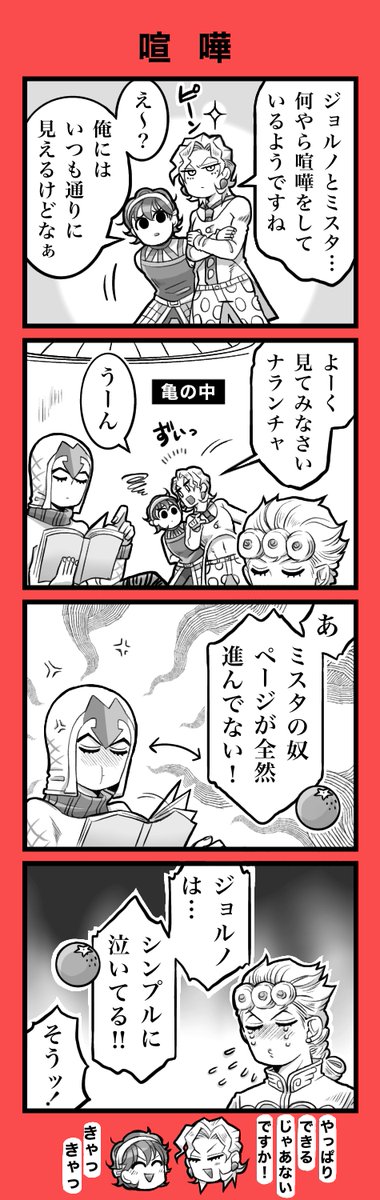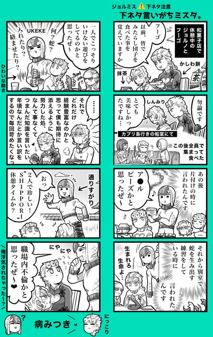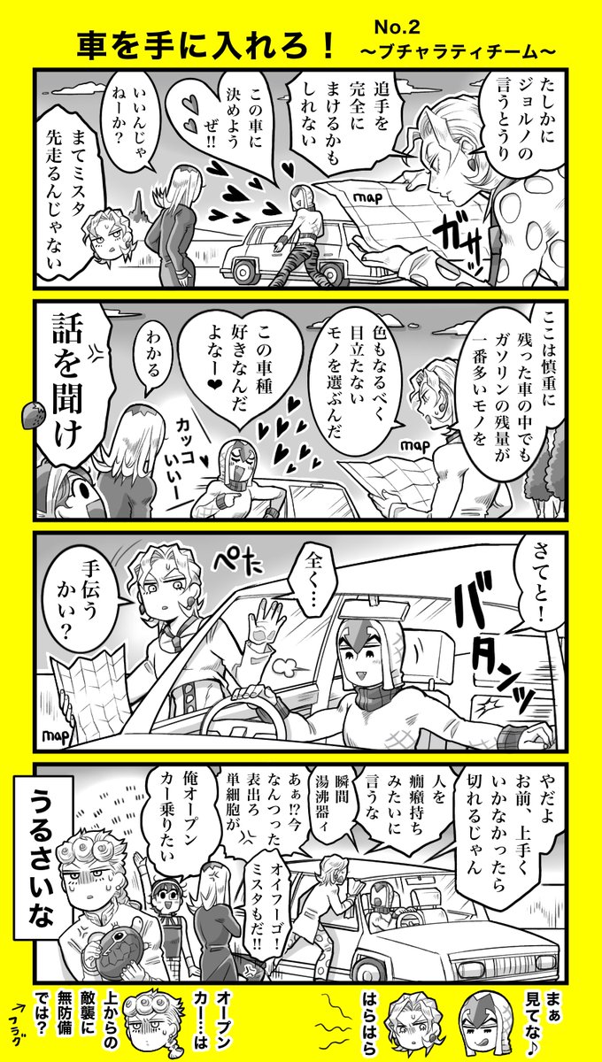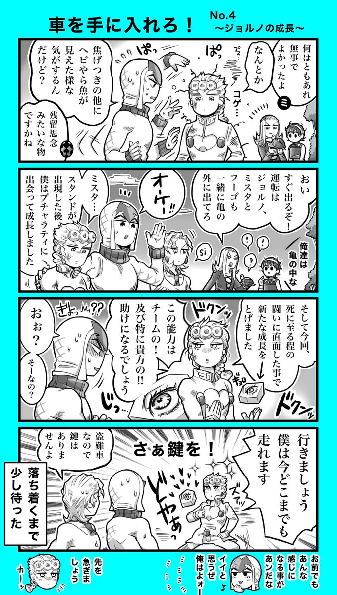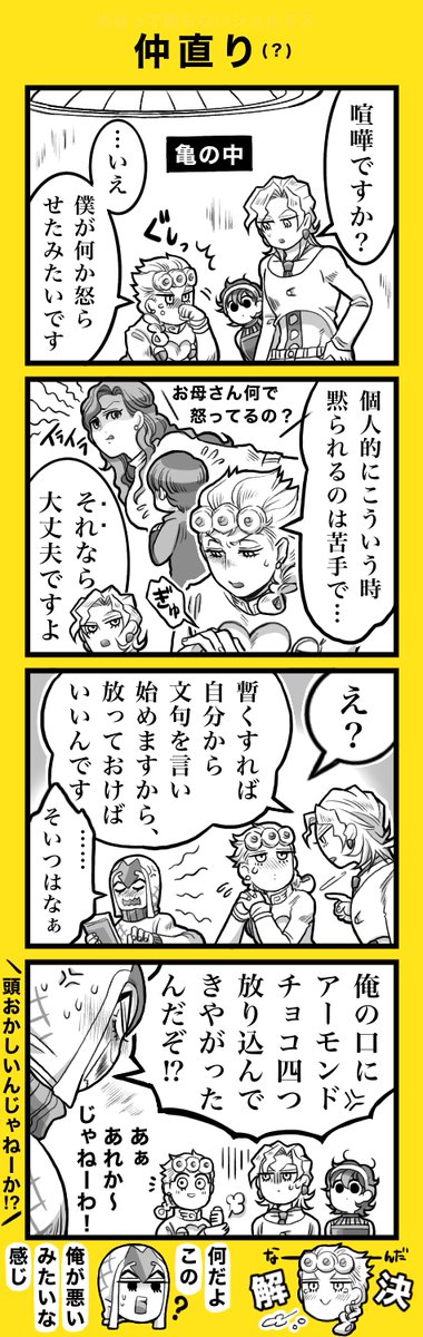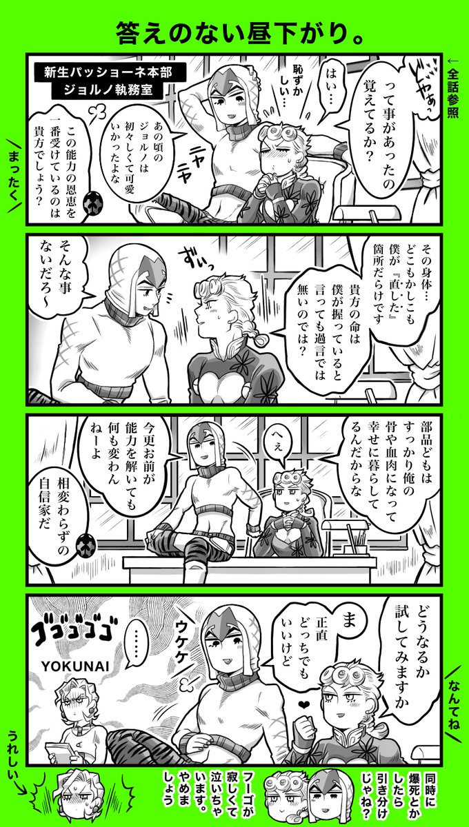 JOJO9部☔+🐉、4コマ漫画 仲良しかわいい ほのかな5部のかおり #jojolands