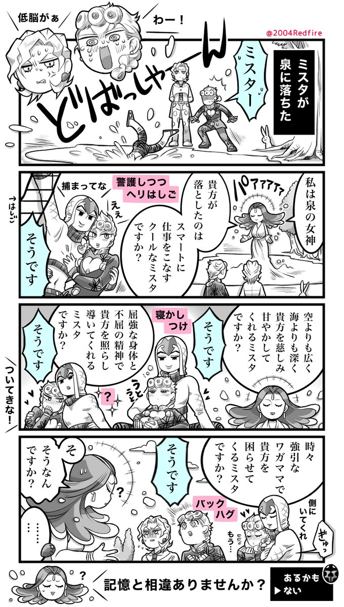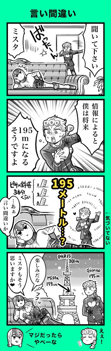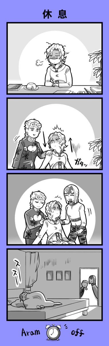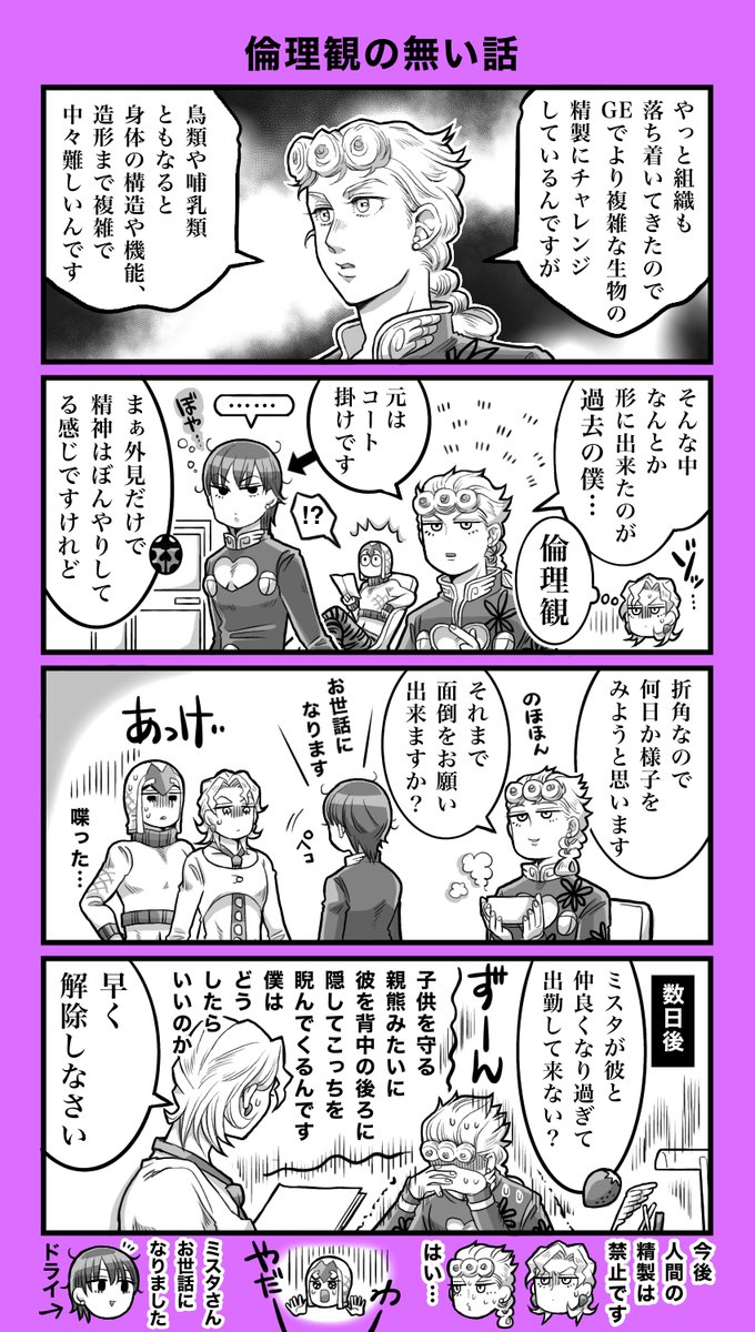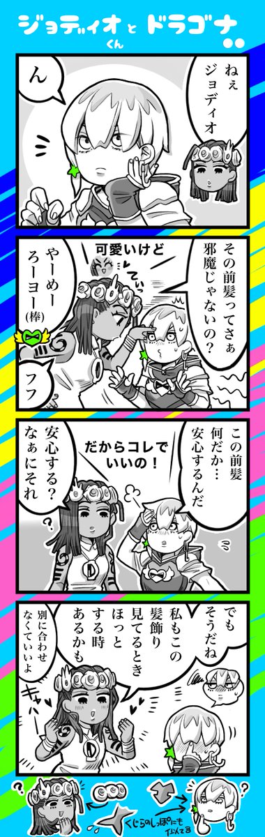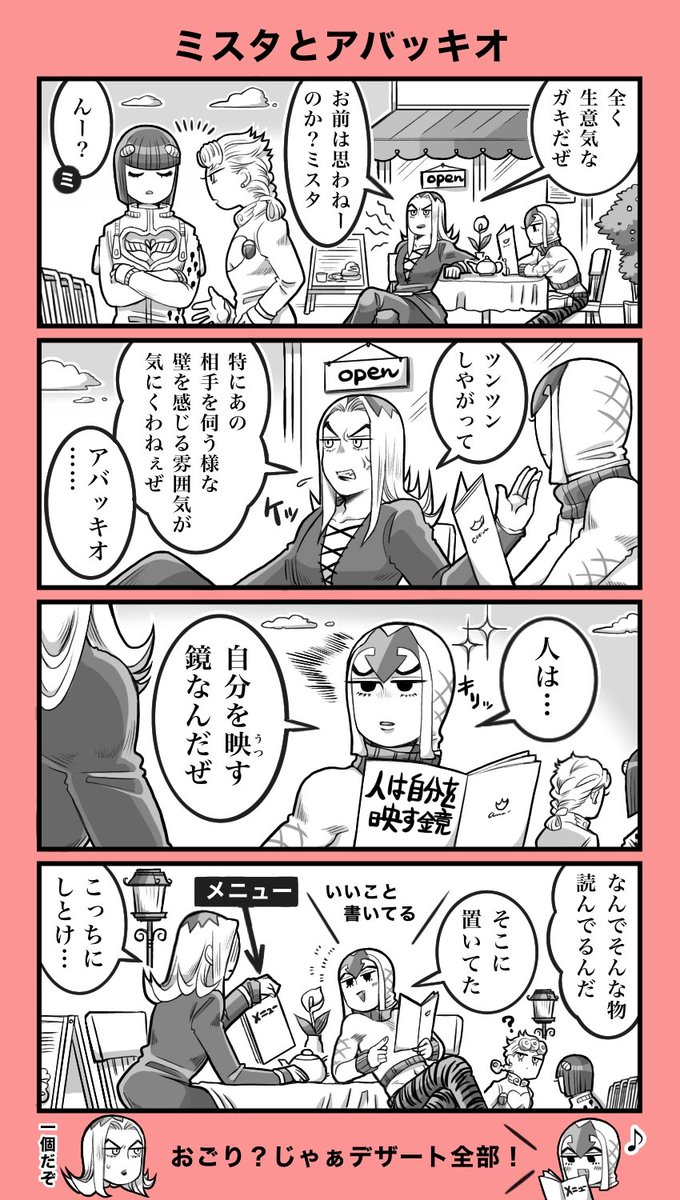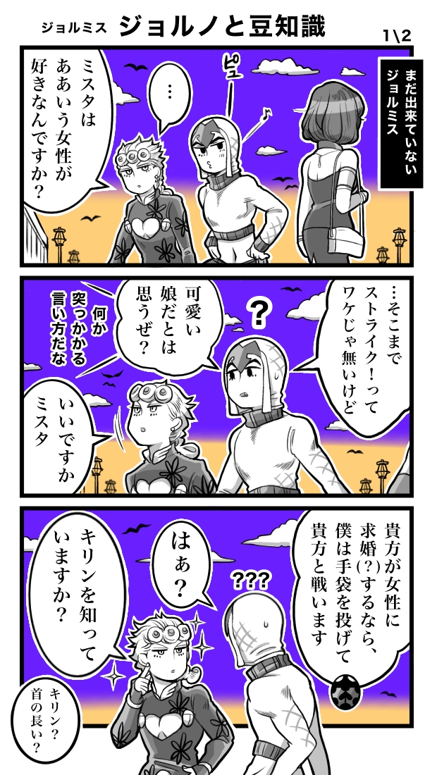 JOJO9部☔+🐉、4コマ漫画 仲良しかわいい ほのかな5部のかおり #jojolands