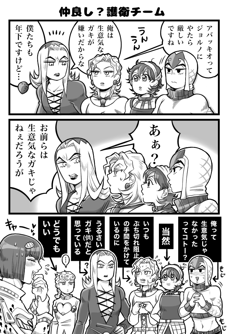 💄と🤐🍓🍊🔫🐞 「仲良し?護衛チーム」 #jjba #護衛チーム