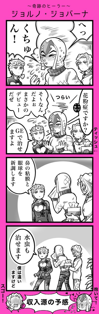 35 152 4コマ漫画 「~奇跡のヒーラー~ ジョルノ・ジョバーナ」 🐞🔫(?)+🍓 23/05/25 19:32