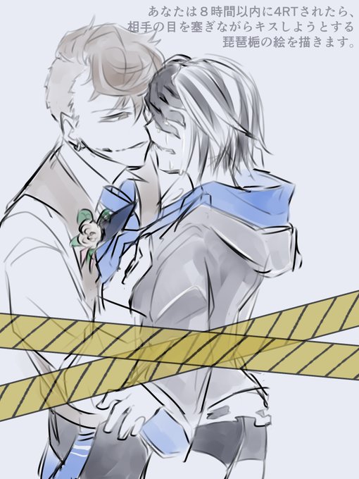 あなたは8時間以内に4RTされたら、相手の目を塞ぎながらキスしようとする琵琶梔の絵を描きます。 #shindanmaker shindanmaker.com/255342 描きました