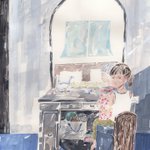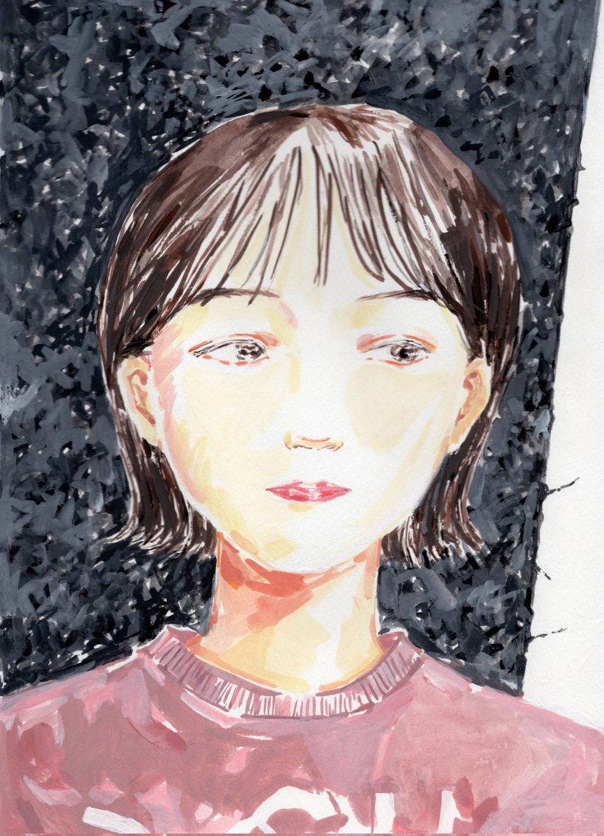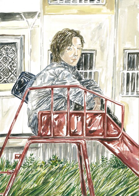 「消え始めた白線と春」 消え始めたけど まだしばらくは消えない 白線に背を向ける 。 @mount_co_jpさまにて展示中! 明日もよろしくお願いいたします。 #illustration #イラスト #イラストレーター