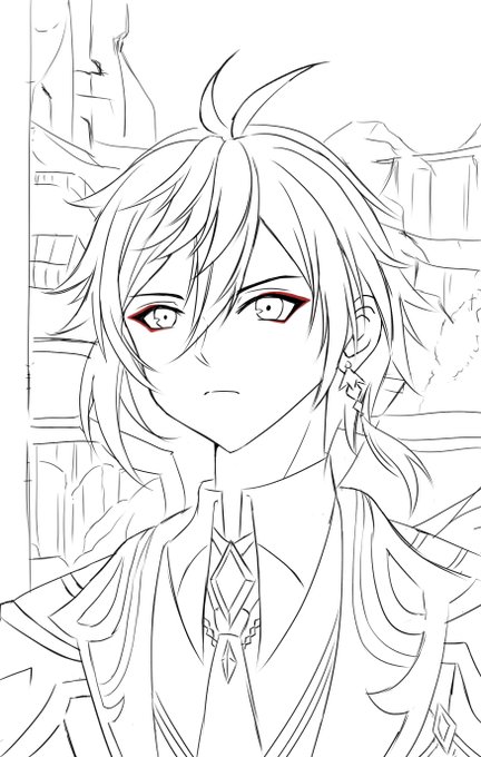 3 30 還在猶豫要不要上色XD #イラスト #オリジナル #原神イラスト #鍾離 22/01/27 02:01