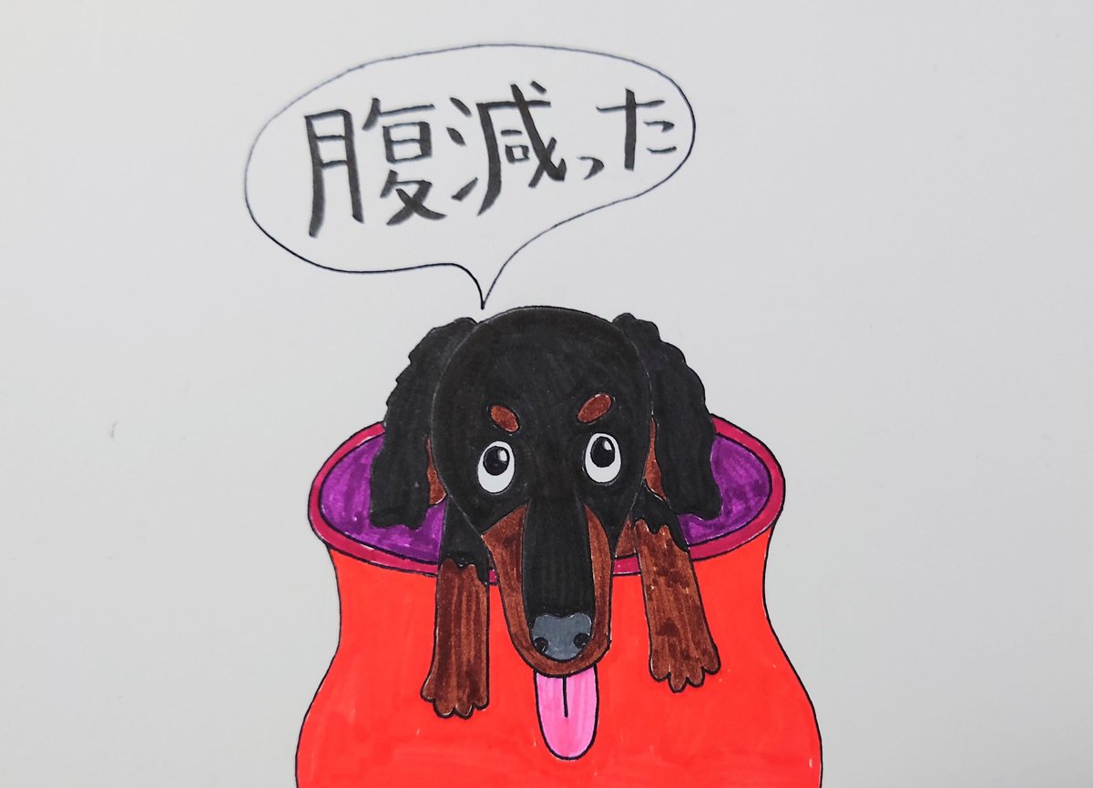 @haru_02_urah さんのリクエストで愛犬のダックスくん描かせていただきました!アボカドの実家に居るイッヌ達なでなでしたくなりましたw タイトル「空腹」 #アナログイラスト #イラスト好き #イラスト