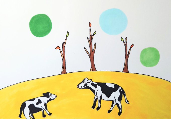 金色と牛。 #アナログイラスト #イラスト好き #イラスト