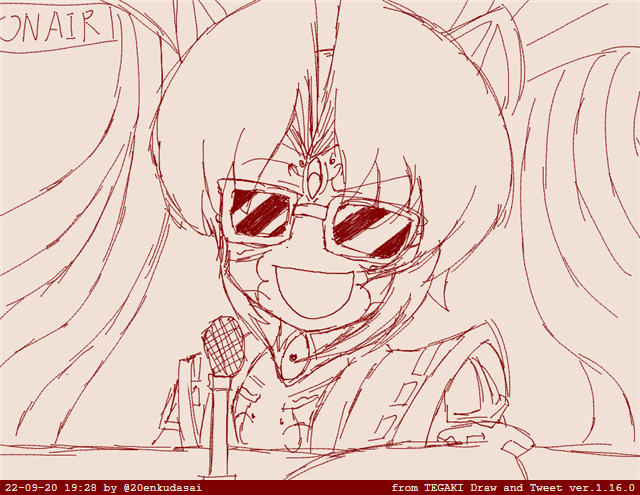 @20enkudasai フフ、この空気、なにもかもが懐かしい… リスナー諸君も我に会いたくて震えて眠れぬ夜が続いたであろう なに?そうでもない?そんな奴の家には滅界を送り込んでやろう #tegaki_dt