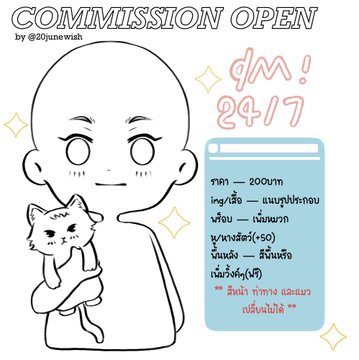 。pls RT 🪧🤍 ー เปิดคมชจิบิอุ้ม รายละเอียดตามรูป ー จองคิวทัก dm (มัดจำครึ่งราคาอีกครึ่งหลังงานเสร็จค่ะ) ー สีน้องแมวเปลี่ยนได้ ー ใช้เวลา 1-2 วัน (พาณิชย์x1.5) ー หากมีข้อสงสัยสามารถทักมาสอบถามได้ตลอดค่ะ ◜◡◝♡ #commissionsopen #commissionTH