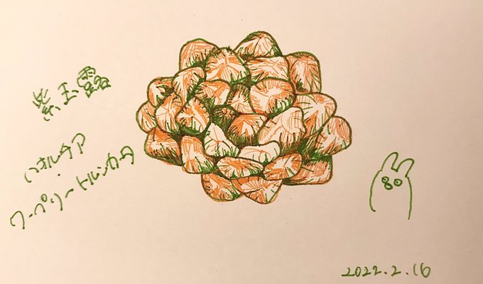 2 42 可愛い名前だね! 描くとき、影と模様の区別が難しい。 種類:クラッスラ 姫星 #1日1絵 #イラスト好きな人と繋がりたい #多肉植物 #絵描きさんと繋がりたい 22/02/10 14:54