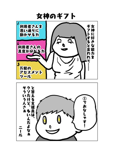 3 16 皆さんは欲しい能力が手に入るならどうしますか? だめですよ①を選んだら でも新人さんほど①が欲しいだろうな〜 #福祉 #就労移行 #イラスト #あるある 22/10/31 07:39
