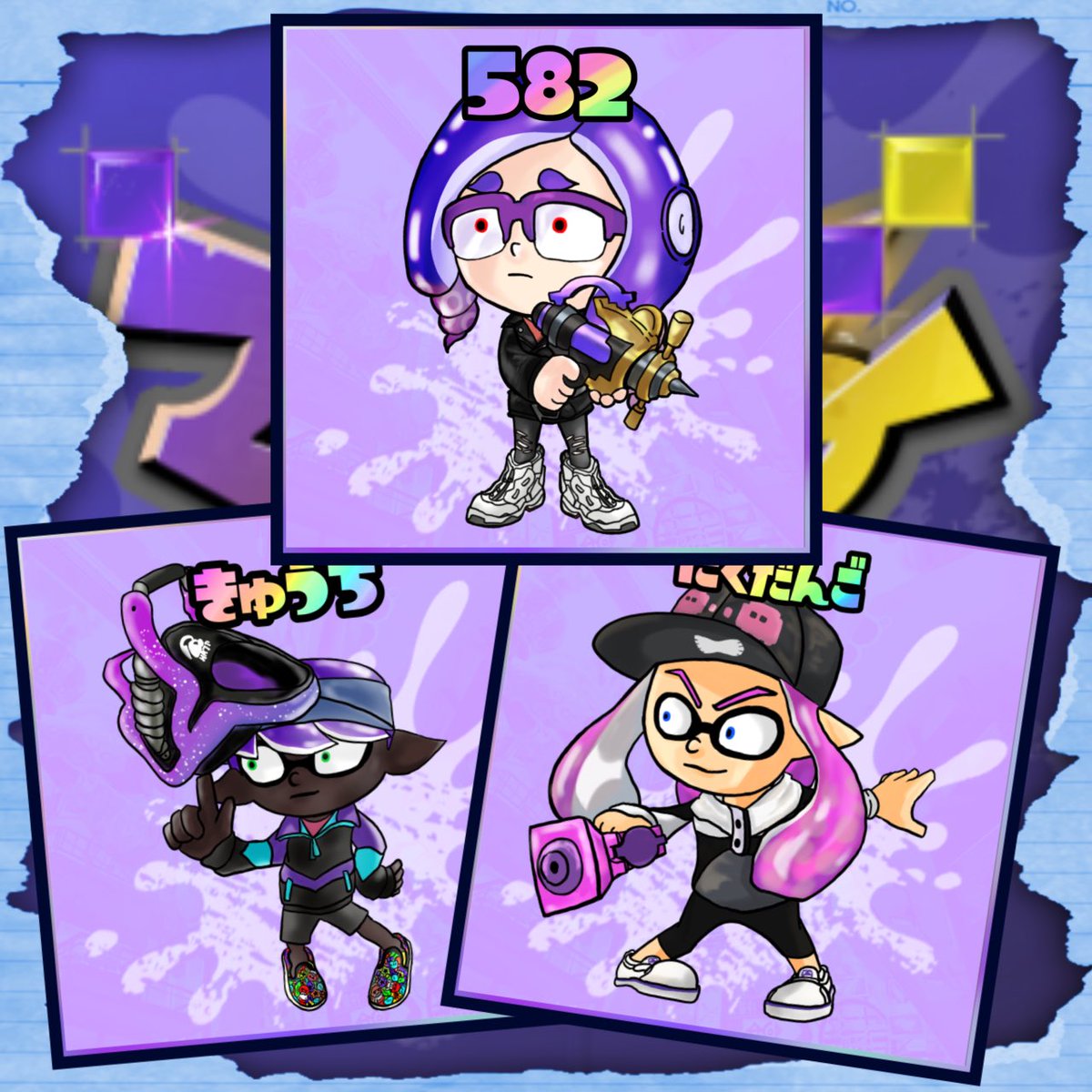 4月めっちゃ描いた、まだ描きそう この辺のスプラ創作イラストはもっと完成度上げたいし増やしたいね #今月描いた絵を晒そう #スプラ創作バンド #スプラ架空バンド #ナワバトラー創作 #ナワバトラー風イラスト