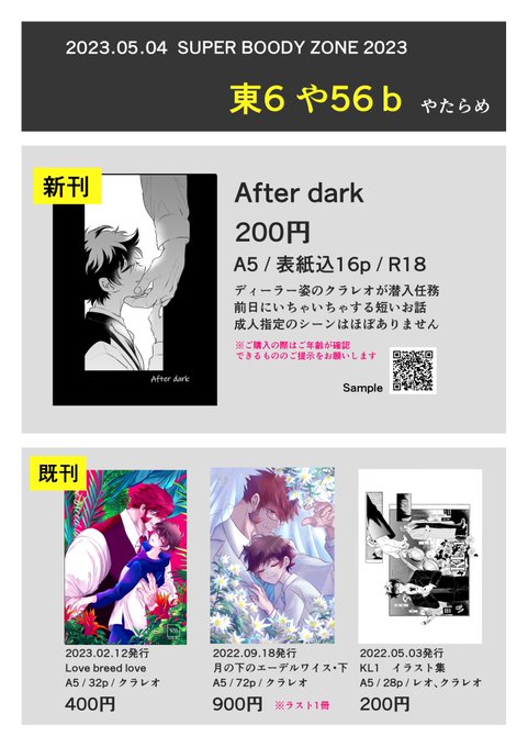 【SBZ2023 クラレオ新刊】おしながきとサンプルです。 今回は新刊の通販実施を見送る予定ですが、次回の新刊発行時に在庫があれば通販します。よろしくお願いします!pixiv.net/artworks/10774…