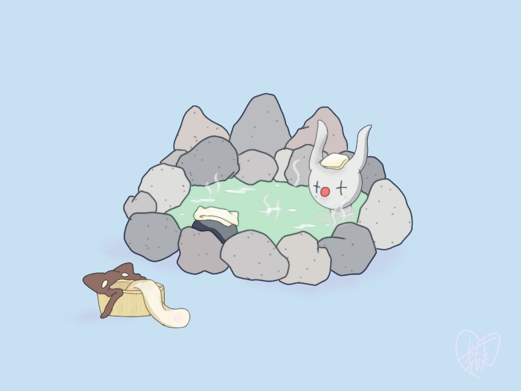 🐱🐰が温泉一緒に行ける日が早く来ますように…。音声動画か、お泊まり配信してくれると嬉しいですね🌸 ⚠いちはちさん、帽子の下捏造してます。ぬいんとろぉるを参考に描きました…。 #bintrollFA #ぴくてっと #絵1857