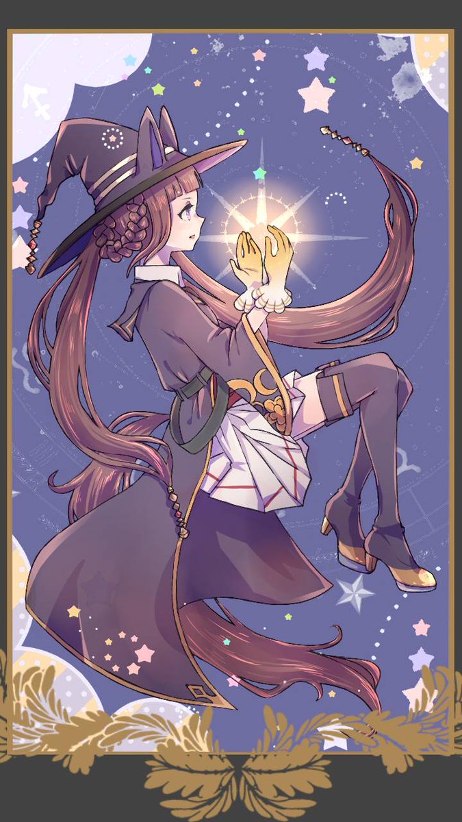 2 7 友人が線画塗ってくれたのがまじで嬉しい😃✨ そしてこのタロットカード感がたまらなく好き💕 #ウマ娘 #スイープトウショウ #イラスト 23/02/11 12:12