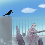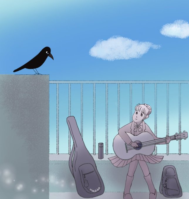 旅立つ君と青空カラス 3月は移動の季節🚄✈️🚚 新たな出発に向かうあなたに幸あれとお祈り申し上げます😊 #イラスト #イラスト好きさんと繋がりたい #旅立ちの日に #カラス #青空 #アイビスペイントX