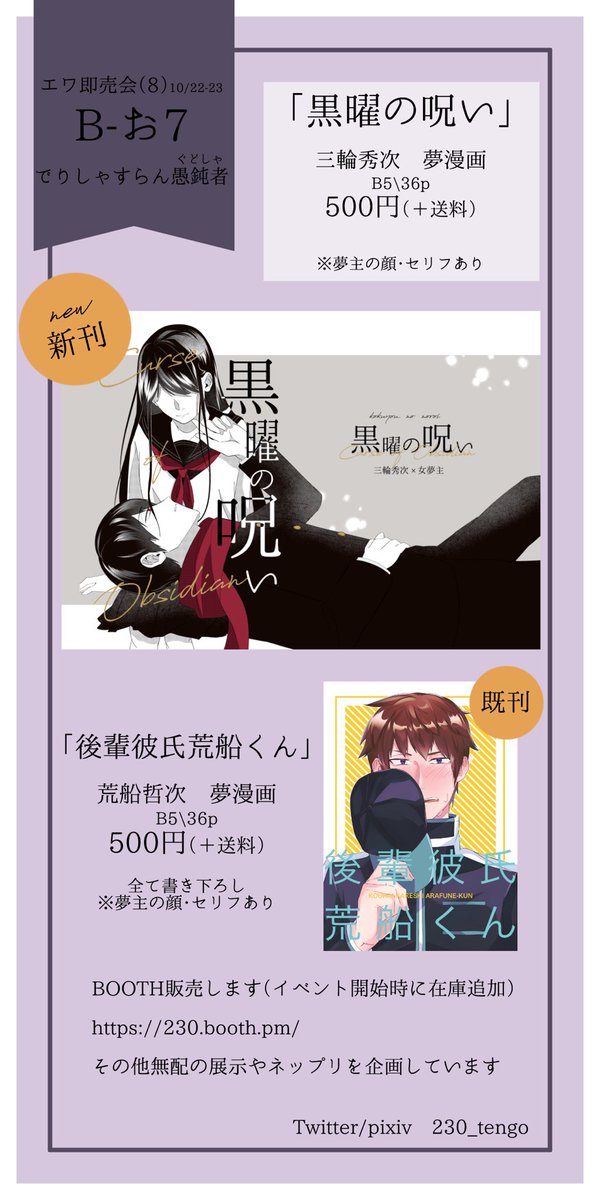 〈10/22-23エワ即売会(8)〉新刊サンプル 【wt夢漫画】(B5/36p/500円)全年齢/表紙フルカラー(PPあり)×本文モノクロ 顔あり/ネームレス BOOTHで販売(+送料)で、開始時に在庫追加します。 230.booth.pm ツリーにサンプル載せています #エワお品書き202210