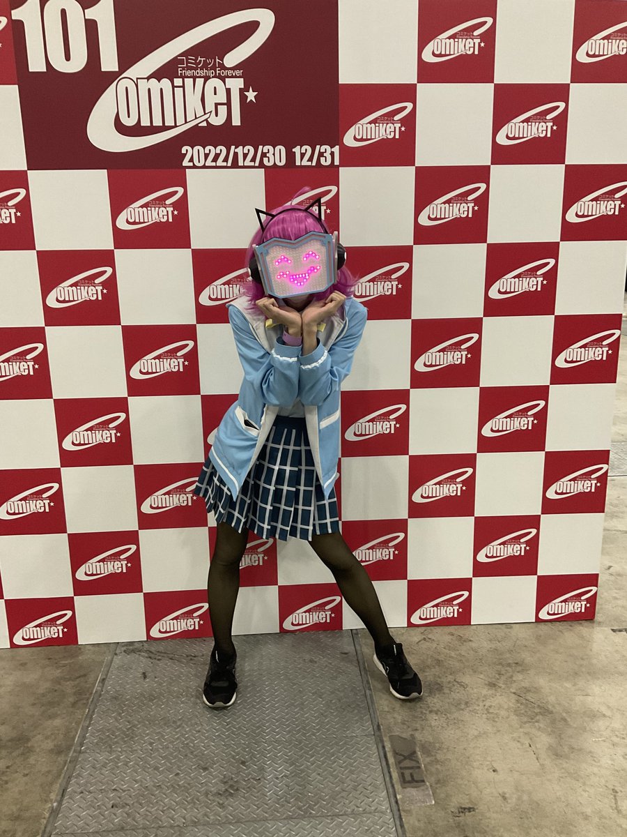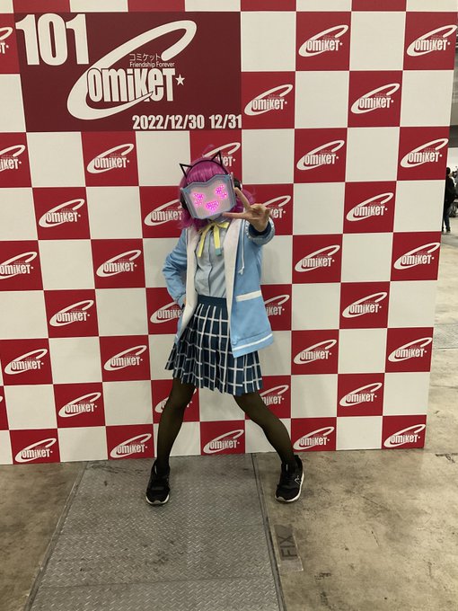 2 6 ラブライブ虹ヶ咲の聖地で天王寺璃奈ちゃんのコスプレを出来て最高でした! 初日と2日目合わせて少なくとも500人位?に撮影していただいて嬉しかったです! KADOKAWA様(ラブライブ版権元)から取材が来た時は流石にビビりましたw #C101 #C101_cos #C101コスプレ #コミケ #cosplay 22/12/31 22:35