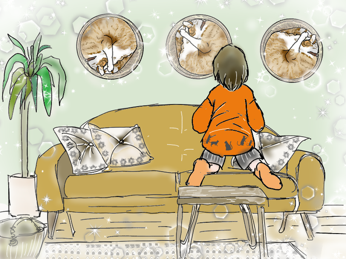 野球応援と背景描きの二刀流してました。いつもより時間かかったのはなぜだろうw #イラスト #アート #illustration #猫のいる暮らし #みんなで楽しむTwitter展覧会 #芸術同盟