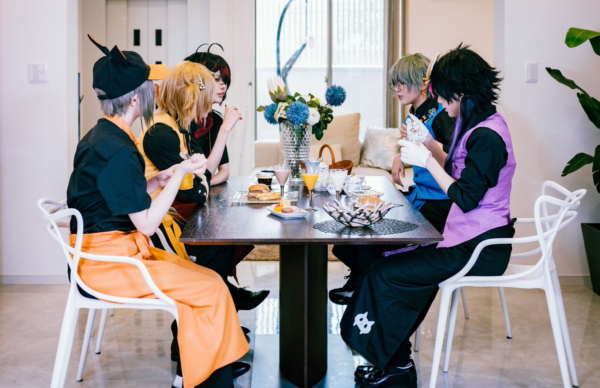 2 2 コスプレ 🌈🕒EN Ⅰuхiем cafe staring contest (敬称略) 撮影 : もと 👹🧧ゆずきまるお 👟☯️千木良 🕵🦊桐崎 🦁💰炭焼ゆま 22/11/07 19:47