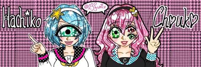 #過去絵を投げて絵を描いた気になろうキャンペーン ヘッダーとネコチャンのステマと多分ワンドロで描いた蝶子と、こういう百合っぷるが見たい、って言うやつ
