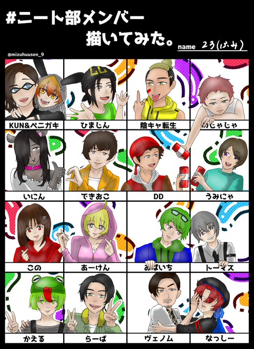 水風船様(@mizuhuusen_9)からお借りして描いてみました! 時間めっちゃかかったし書くこと少ないメンバーも描けて楽しかったです🫶 #50人イラフト #ニート部アート