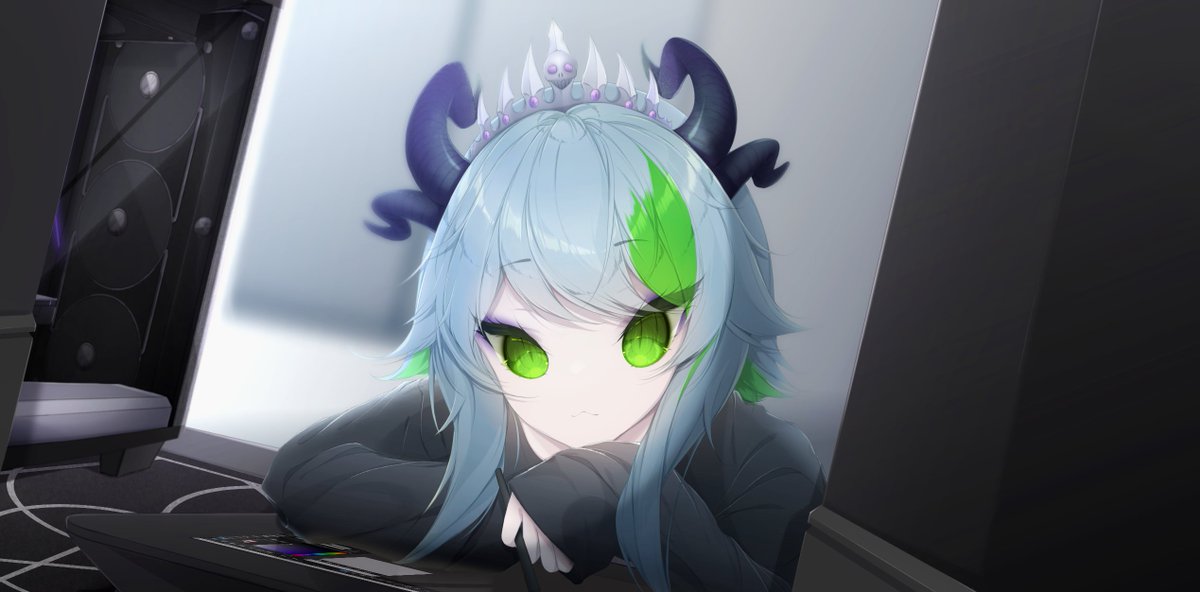 @LichVtuber illustration Painfully failed to paint bold-colored lips. Not that i've attempted it before regardless, decided to just leave it out for the sake of integrity #Lichcraft